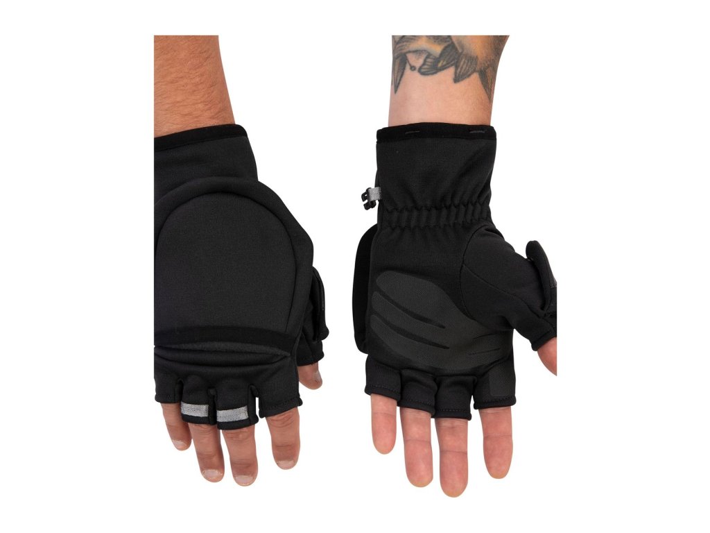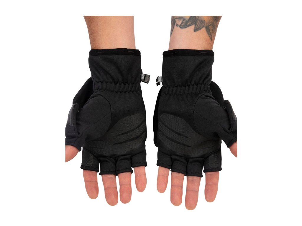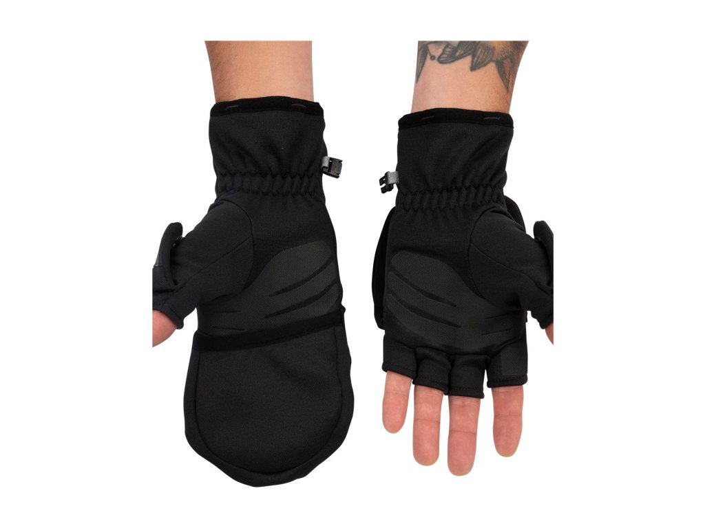 - Durable hard-face fleece and spandex blend with a brushed interior for high-dexterity comfort - 2-in-1 mitten and half finger mitt for full fishing function - Stowable overmitt prevents line snag - TPU palm overlays for enhanced durability and grip - Webbing pull loops at wrist for easy on/off - Pairing snaps