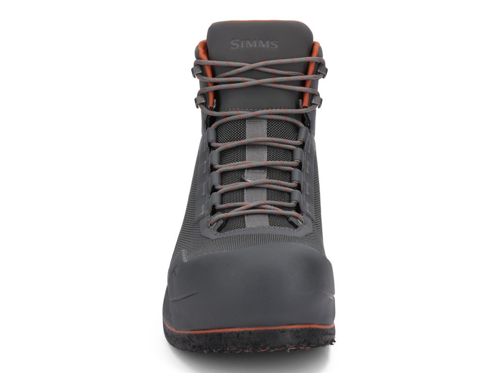 - Durable and lightweight, TPU-based synthetic woven upper material - Molded, rubber toe wrap and abrasion panels protect against wear and tear - High cushion dual-density EVA midsole for comfort and stability - Drain holes included in the boot so water does not stay trapped - The outsole is compatible with Simms Hardbite Cleats and Studs