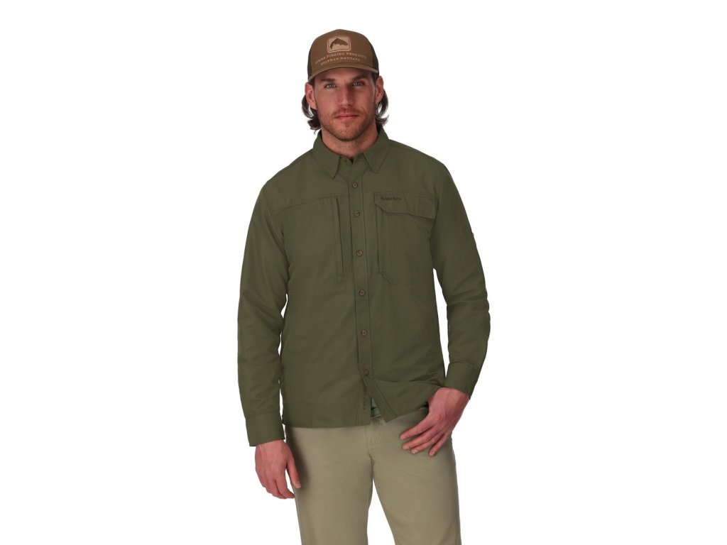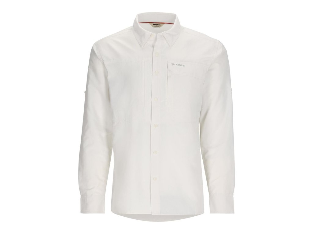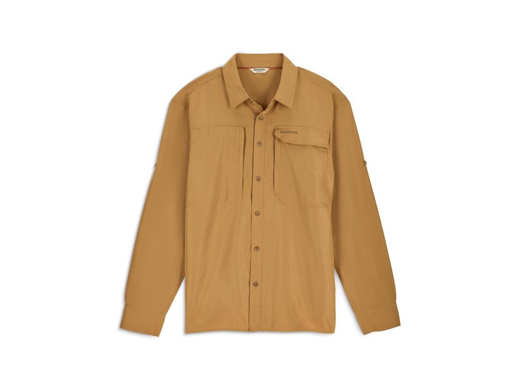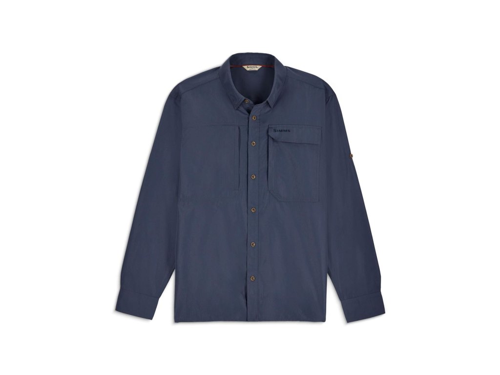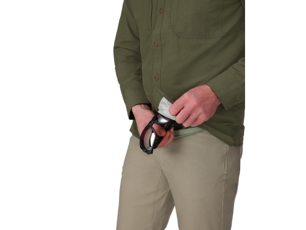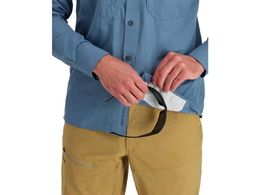 • Built from our trustworthy and proven poly-nylon ripstop blend, this woven fast-drying fabric has protected our anglers from the sun for over a decade • Classic point collar for a crisp look and casual feel, center back locker loop and button-front closure. Finished with shirttail hem, self-fabric side seam gusset and convenient sunglasses chamois • Left chest drop-in pocket with welt closure, stacked with a bonus hidden zippered pocket. The right chest pocket closes with a vertical zipper. Pockets are lined with mesh for water drainage and quick drying. • The back yoke extends over shoulders for enhanced stretch and mobility, finished with a back vent for comfort in hot, humid weather • Adjustable, roll-up set-in sleeves secure with button closures. Cuffs designed for back-of-hand sun protection. • This product is crafted without the use of PFAs FABRIC TECHNOLOGY: - Body - 75% polyester/ 25% nylon, 90 gsm ripstop woven heater with MCS + UPF blocker