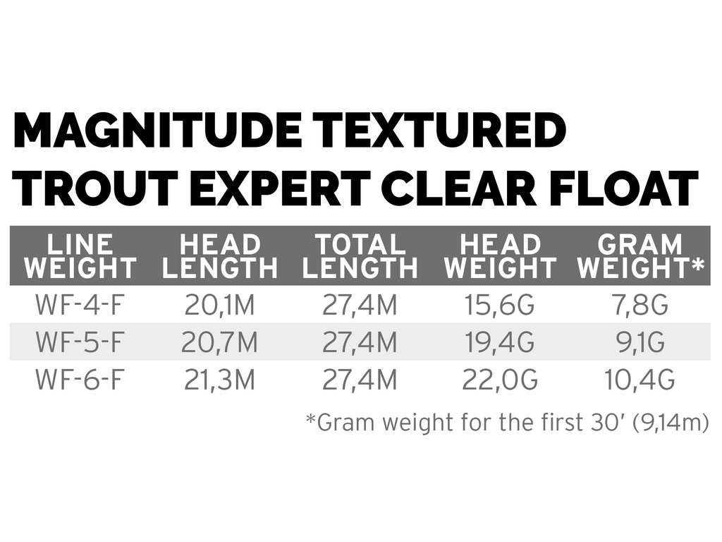 • DuraCoat leverages advanced dual-polymer design to optimize line stiffness, abrasion resistance, and slickness. The core is enveloped by a supple material, promoting minimal memory and strong adhesion, while the outer layer boasts a robust composition that significantly enhances slickness and abrasion resistance. • Enhanced with EST+ slickness additive for unmatched durability, smoother shooting, and eco-friendly performance. • Using naturally buoyant polymers, we’ve created the next generation of clear floating lines. • The 10' clear floating tip allows for the ultimate stealth when presenting flies to highly pressured fish. • Floating Texture on the tip section for the ultimate in flotation; Shooting Texture running line delivers longer casts • Revised compound taper for delicate deliveries • SA MAG T TROUT EXPRT WF X F (X = line weight
