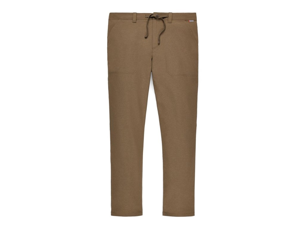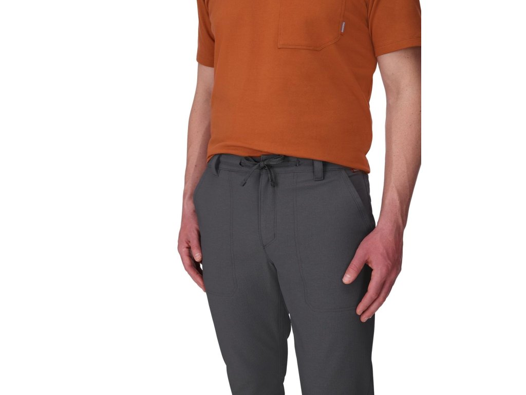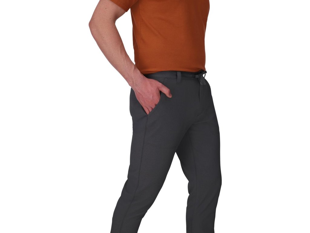 • Waistband with belt loops and a drawcord that can be worn on the inside or outside of the waistband • Zipper fly with extra strong button for improved longevity • Two drop-in hand pockets • Two envelope back pockets, one with a zipper closure • Lightweight micro drawcord at hem to cinch tight • Sim Fit; 79cm // 31" inseam FABRIC TECHNOLOGY: 72% Nylon (47% Rec), 28% Sorona Wicking, quick dry finish Weight: Lightweight