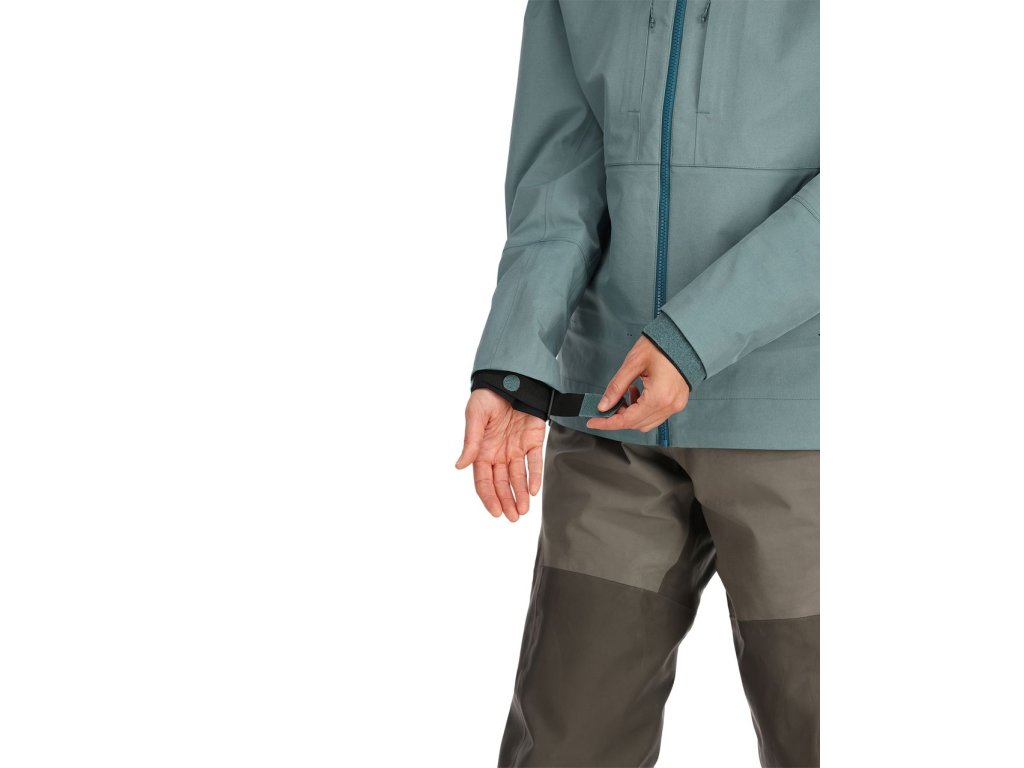 - GORE-TEX waterproof and breathable 3-layer fabric with strategically mapped fabrics for rowing and casting ease 3-point adjustable storm hood - Two spacious, fly-box compatible, zippered chest pockets A fly patch located at the seam of the left chest pocket can be flipped down for easy use or hidden away for a cleaner look - Dual zippered handwarmer pockets are set high on the body to prevent water from entering during deep wading situations with pass-through zippers to access waders or bibs underneath - Easily adjustable, low profile cuff and hem FABRIC TECH: Lower Front Body and Back Body Underarm Panels - 70D 3-layer GORE-TEX, 100% nylon, DWR; Backer - 100% nylon Tricot Hood, Shoulders, Upper Body - 40D 3-layer GORE-TEX, 100% nylon with Mechanical Stretch, DWR; Backer - 100% nylon Tricot