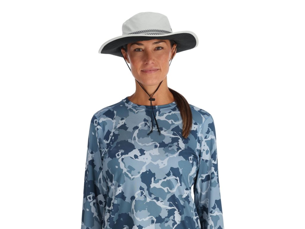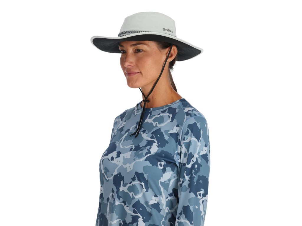 - Nylon fabric with DWR finish provides UPF 50+ protection - Adjustable stampede strap - Easy fit elastic sweatband for comfort and range of fit - Foam brim for floatation - Black underbrim for glare reduction FABRIC TECH: 100% nylon Tactel®; Teflon® DWR water-resistant finish
